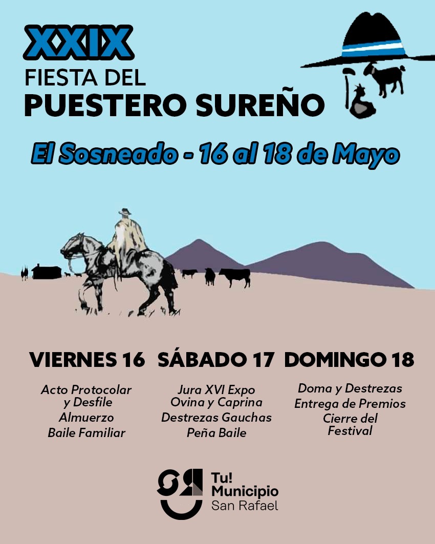 Este fin de semana en El Sosneado se llevará a cabo una nueva fiesta en “Homenaje al Puestero Sureño”. Será la edición XXIX de esta gran celebración del secano sanrafaelino.