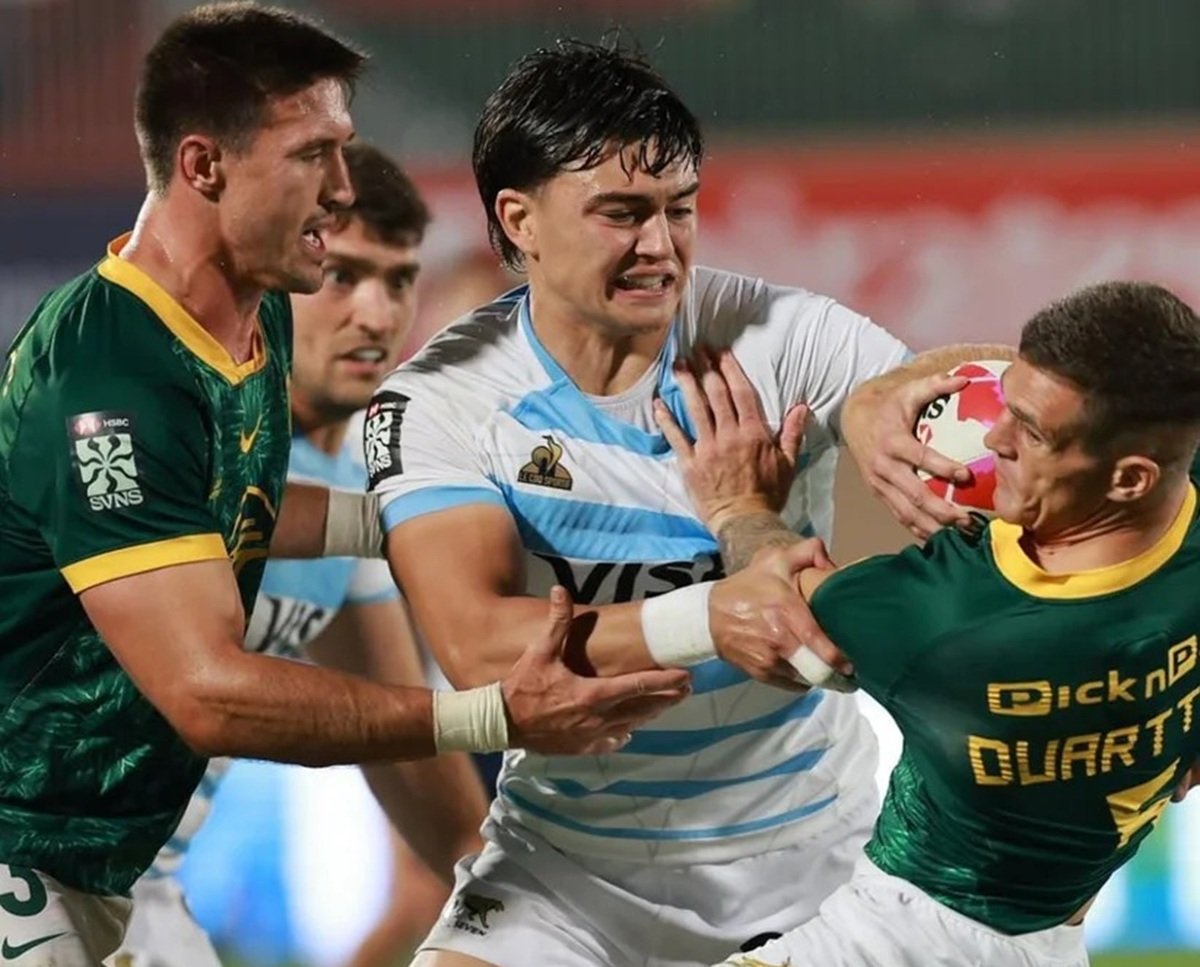 Los Pumas 7s superaron 19-14 a Sudáfrica en el enfrentamiento correspondiente a la última fecha del Grupo A del Circuito Mundial de Rugby Seven de Dubái.