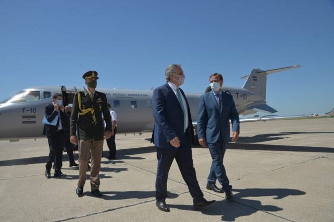 Minutos después del mediodía, el Gobernador Rodolfo Suarez recibió al Presidente de la Nación, Alberto Fernández en la IV Brigada Aérea. Se trata de la primera visita del mandatario nacional a la provincia, en el marco de la Fiesta Nacional de la Vendimia y la presentación del Plan Estratégico Argentina Vitivinícola 2030 de COVIAR.