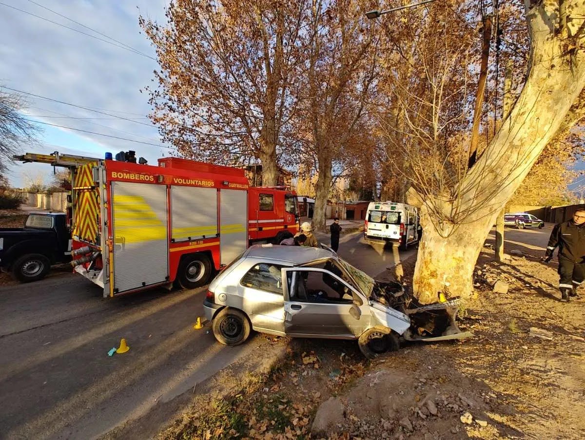 Un hombre chocó contra un árbol y quedó atrapado dentro del vehículo