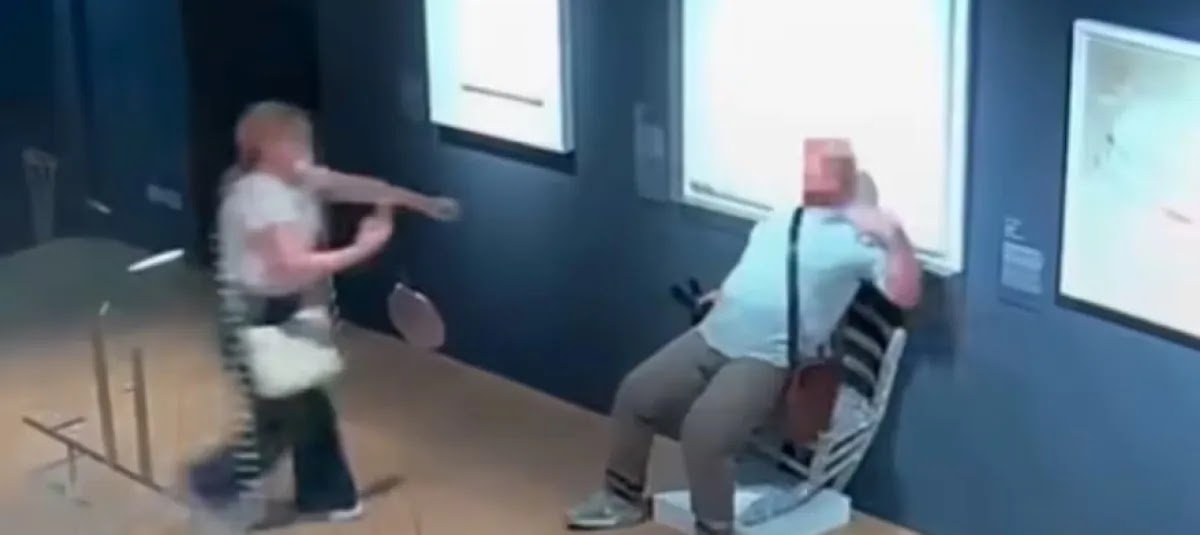 Una pareja, al tomarse una foto, cayó sobre la delicada obra de Nicola Bolla. El video de las cámaras de seguridad…