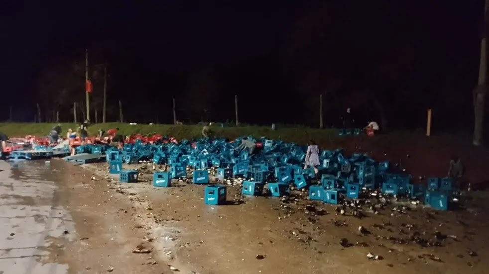 Volcó un camión cargado con cerveza: personas lo saquearon en lugar de brindar ayuda a los heridos