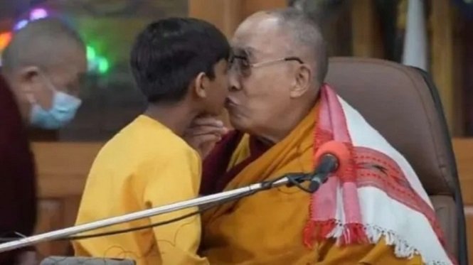 Video: el Dalai Lama besó en la boca a un nene, le pidió que le chupara la lengua y causó indignación