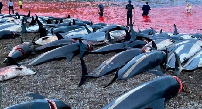 Islas Feroe: Imágenes impactantes muestran la trágica muerte de cientos de delfines en medio de una polémica tradición