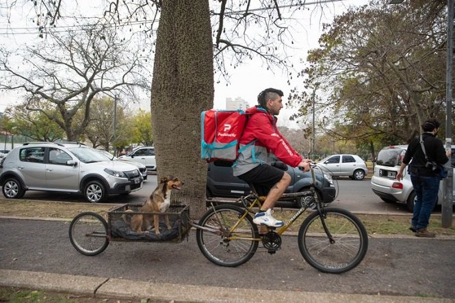 Rescató a un perro en una favela de Brasil, volvió al país y ahora hacen delivery juntos para sobrevivir en la pandemia