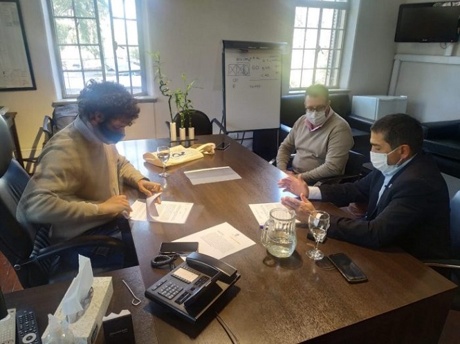 El intendente Walther Marcolini junto con los directivos del hospital Enfermeros Argentinos, Dr. Fabio Gómez Parra, Dr. Alejandro Torres, y…