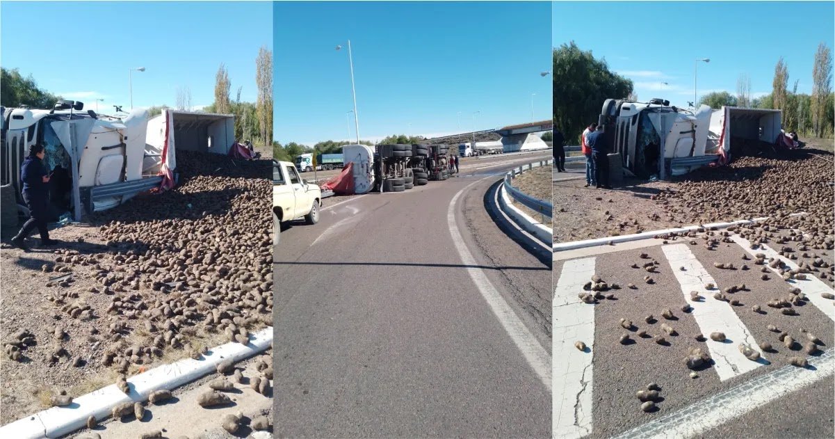 Las Catitas: Camión cargado con papas volvó en Ruta 7. A las 13:20 horas de hoy, un camión Scania, conducido…