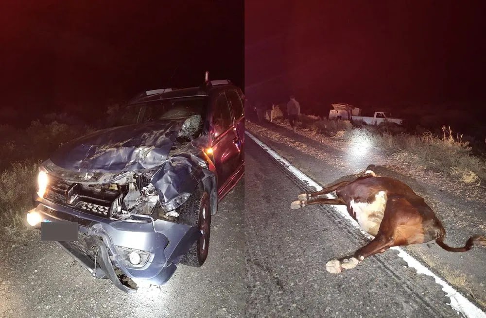 Tres camionetas chocaron contra vacas en la Ruta 40