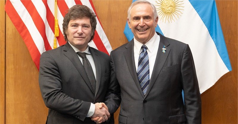 Con cambio de look, Milei se reunió con el embajador de EE.UU. Marc Stanley