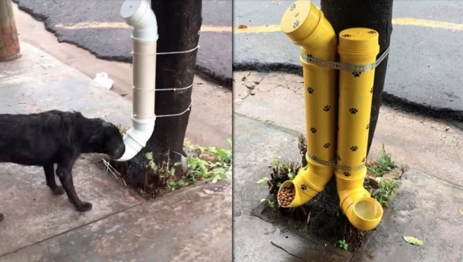 Un joven sanrafaelino instaló comederos para perros callejeros