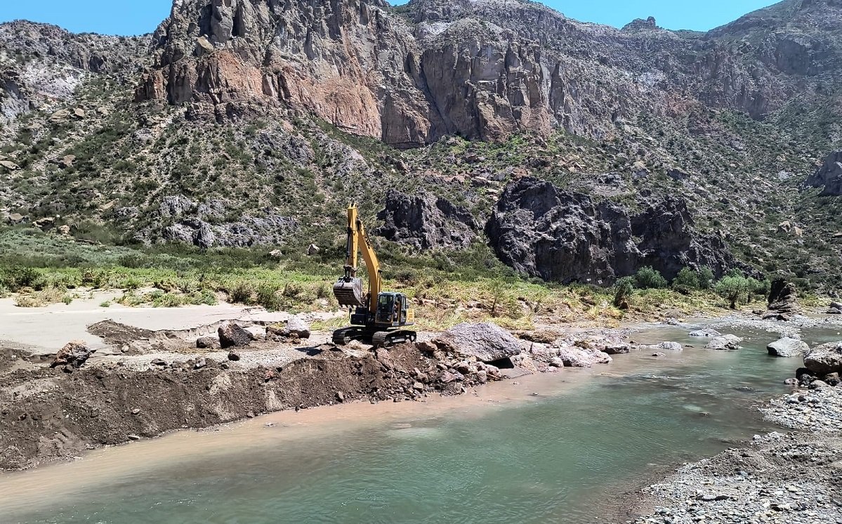 La Dirección de Hidráulica colabora en la reparación de la ruta del Cañón del Atuel y ha extraído más de 2500 m3 de rocas y barro