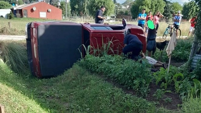 Un borracho puso a manejar a su hijo de 11 años y el chico volcó la camioneta
