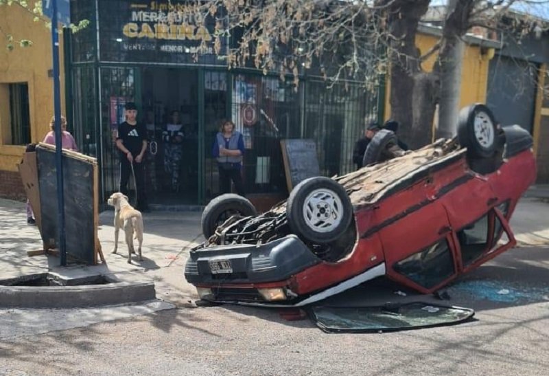 Accidente vial en San Rafael: choque y vuelco entre un Fiat y una Citroën