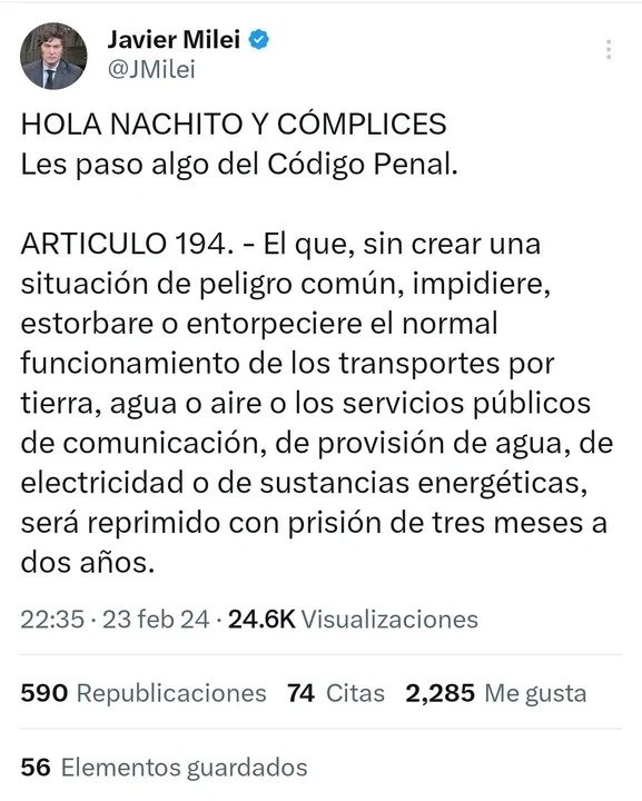 — Oficina del Presidente (@OPRArgentina) February 24, 2024