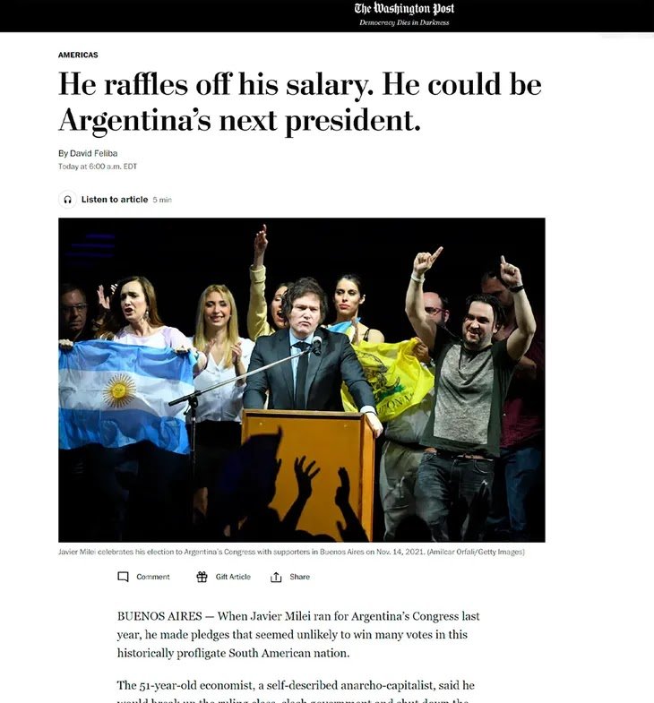 The Washington Post dice que Javier Milei puede ser presidente en 2023