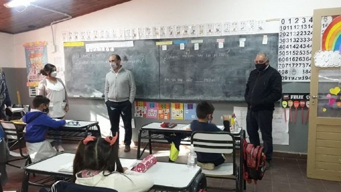 El director general de Escuelas recorrió colegios de Junín junto al intendente y recalcó que esta modalidad “todavía se puede mantener” a pesar del impacto de la segunda ola.