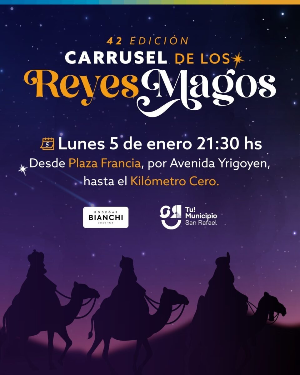 Este lunes 5 de enero vuelven la magia de los Reyes Magos a las calles de San Rafael. El tradicional carrusel organizado por Bodegas Bianchi saldrá a las 21 desde Plaza Francia.