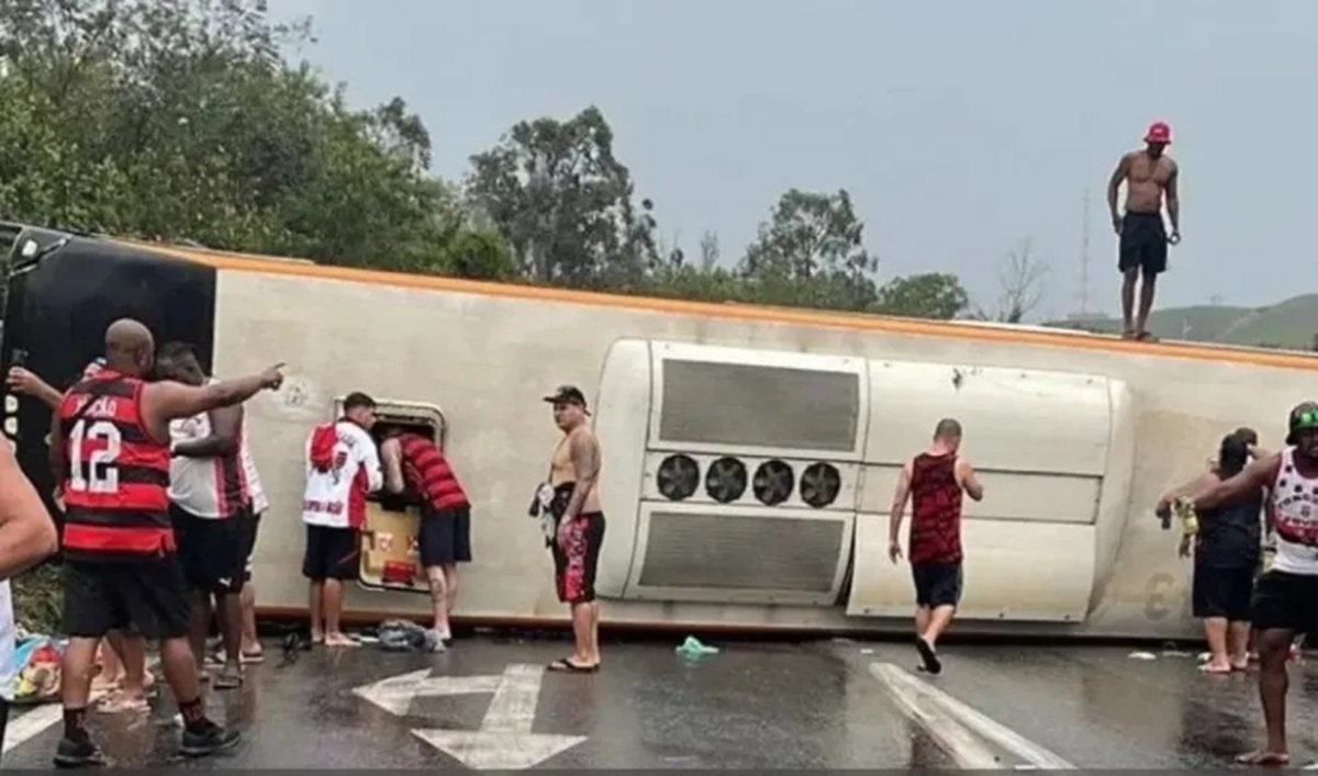 Un colectivo que trasladaba aficionados del Flamengo a Buenos Aires para el partido de vuelta de las semifinales de la Copa Libertadores contra Racing volcó este lunes en una autopista de Brasil, dejando al menos 16 personas heridas, de las cuales dos (o tres, según distintas fuentes) se reportan en estado de gravedad.