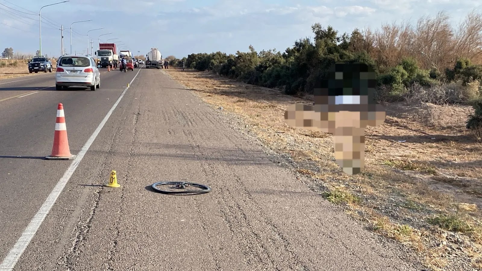 El hecho ocurrió alrededor de las 14:42 en la intersección de Ruta 24 y calle Palomar, en jurisdicción de la Comisaría de Jocolí. Según la información disponible, un camión marca Iveco, conducido por un hombre de 65 años identificado como B. J., atropelló a un ciclista que circulaba por la zona.