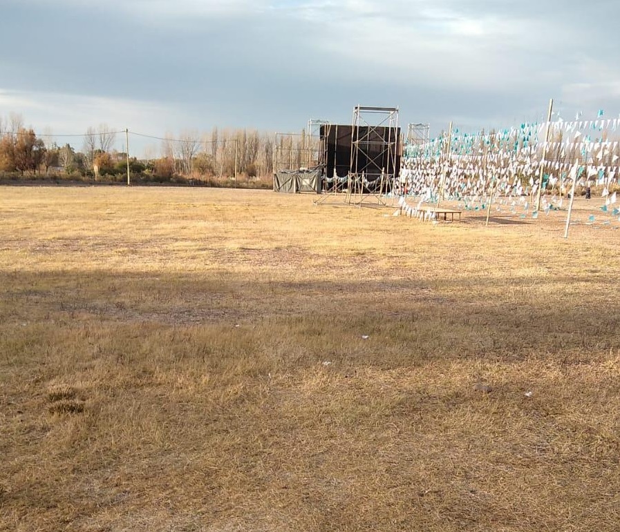 Los banderines celestes y blancos que aún se ven en las imágenes, son reciclados para próximos eventos culturales, indicaron desde la Dirección de Cultura.