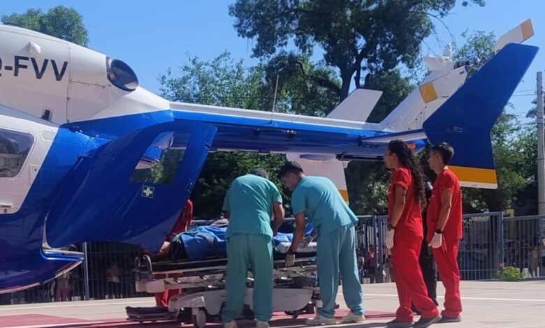 En una primera instancia, la víctima fue trasladada en ambulancia al Hospital de Uspallata. Sin embargo, ante la gravedad de su estado clínico, los profesionales médicos dispusieron un traslado sanitario aéreo de urgencia. Para ello, despegó el helicóptero Halcón 3, que arribó a Uspallata y luego concretó el traslado hasta el Hospital Central.