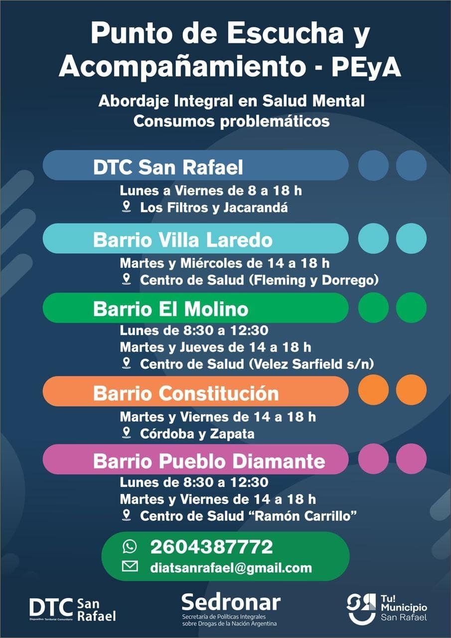 En un importante trabajo territorial, el Municipio de San Rafael y Sedronar sumaron nuevos espacios de escucha y acompañamiento para personas con consumo problemático de sustancia.