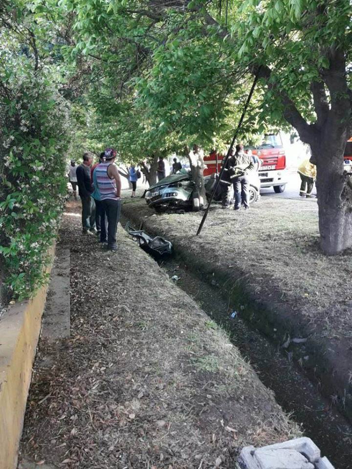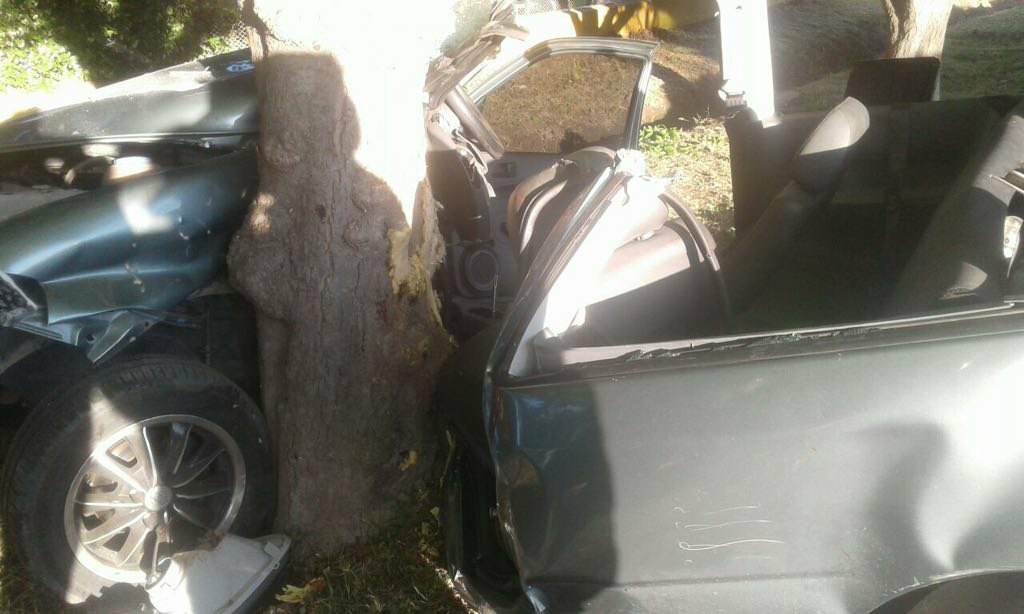 Tremendo impacto de un automóvil contra un árbol, hay heridos