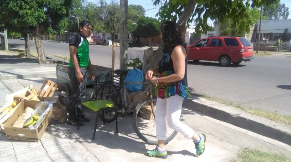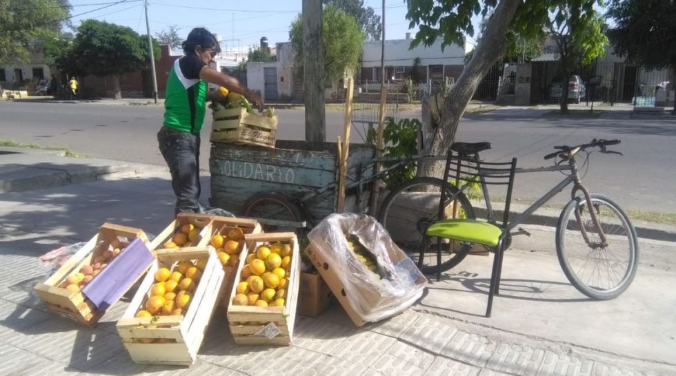 Se trata de José Rubén Navarro, quien con su carrito y la bicicleta, están ubicados en Telles Meneses 268, frente a Radio FM Sol, con el fin de regalar 200 kg. de fruta a quienes lo necesiten.