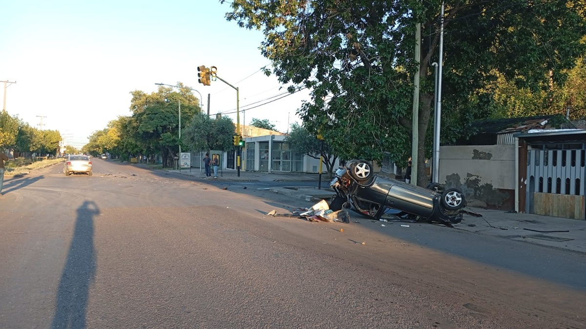 Como consecuencia del fuerte choque, el Chevrolet Corsa terminó volcando y quedó con sus cuatro ruedas hacia arriba sobre la calzada. Ambos conductores sufrieron politraumatismos varios.
