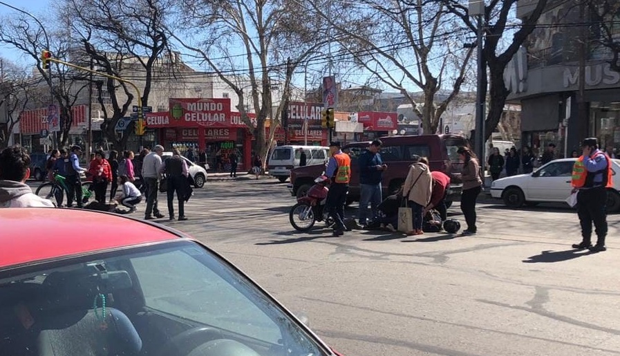 En horas de este mediodía una mujer que circulaba en una moto 110 cc atropelló a un hombre en la intersección de avenida Mitre y San Lorenzo.