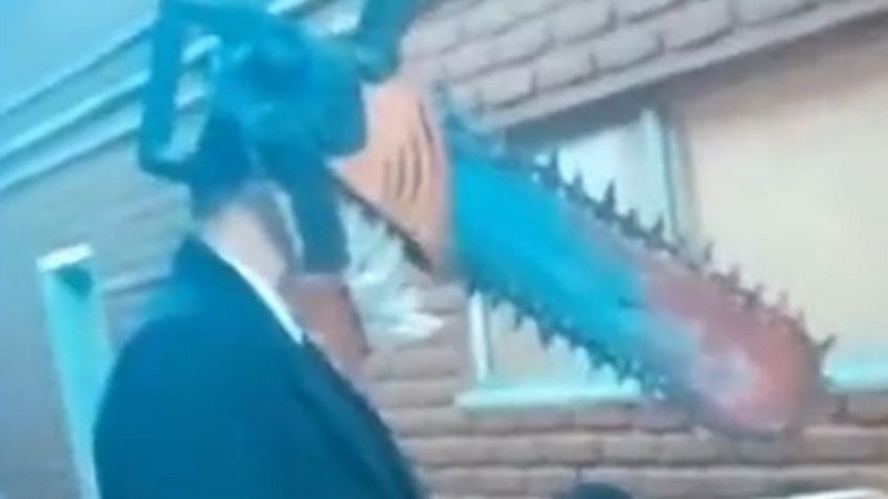 En las imágenes se puede ver al votante con una motosierra en la cabeza, replicando a Pochita, un personaje de anime que se convirtió en la mascota libertaria en los últimos días de campaña.