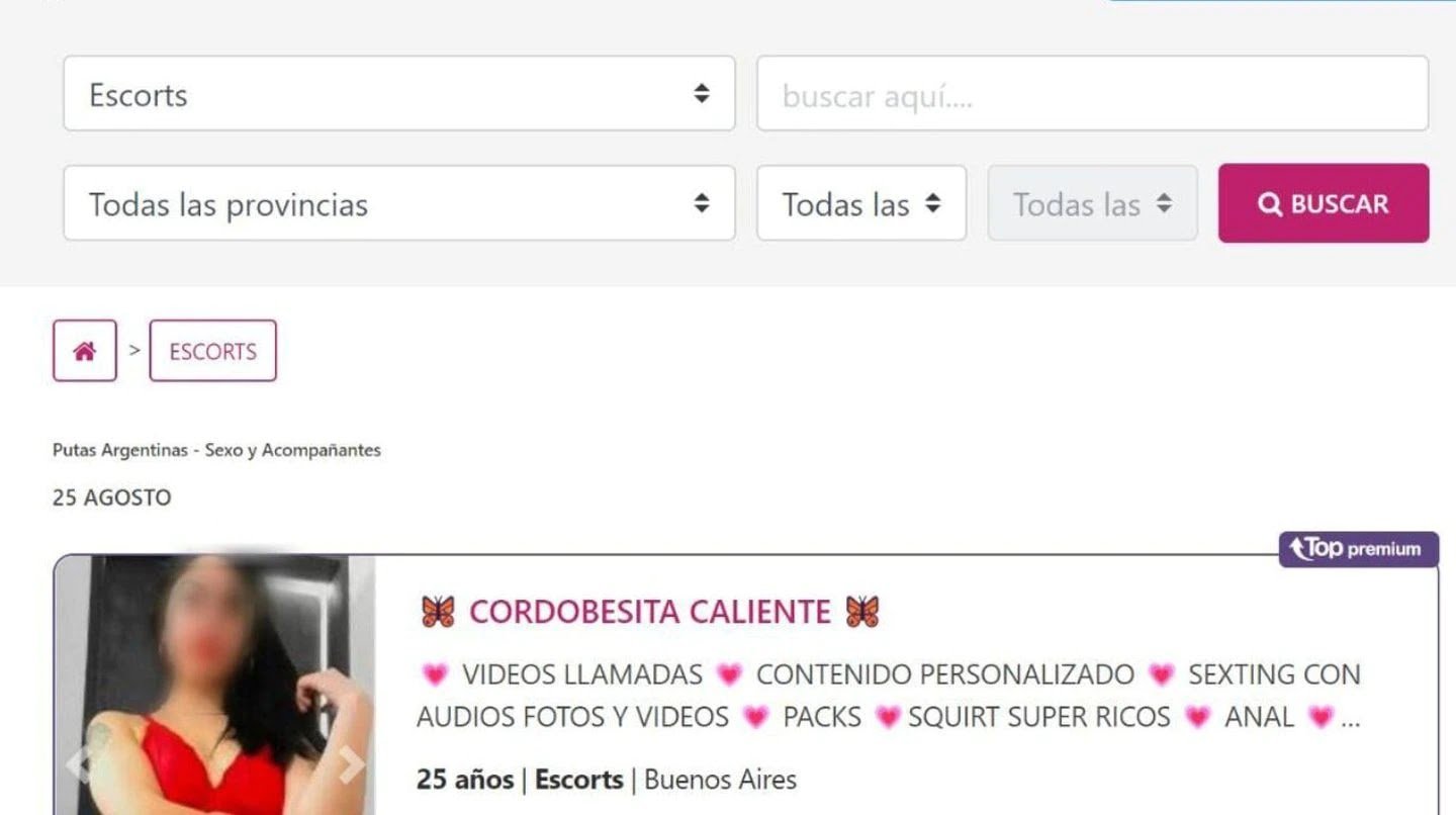 Se detuvo en el anuncio de una mujer que compartía varias imágenes, pero no su nombre. Junto a las fotos se leía: “Cordobesita caliente. OnlyFans verificado”. Entre sus servicios ofrecía videollamadas, packs de fotos y videos, sexting y contenido personalizado. También detallaba que se encontraba en Córdoba y que no llevaba a cabo encuentros sexuales.
