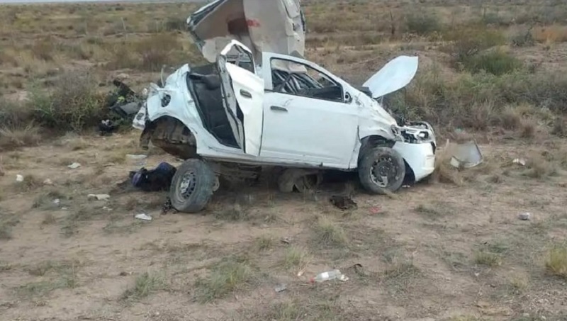 El choque provocó que el vehículo se saliera de la Ruta Nacional 22, volcando repetidas veces antes de finalmente detenerse en el pastizal al lado del carril contrario.