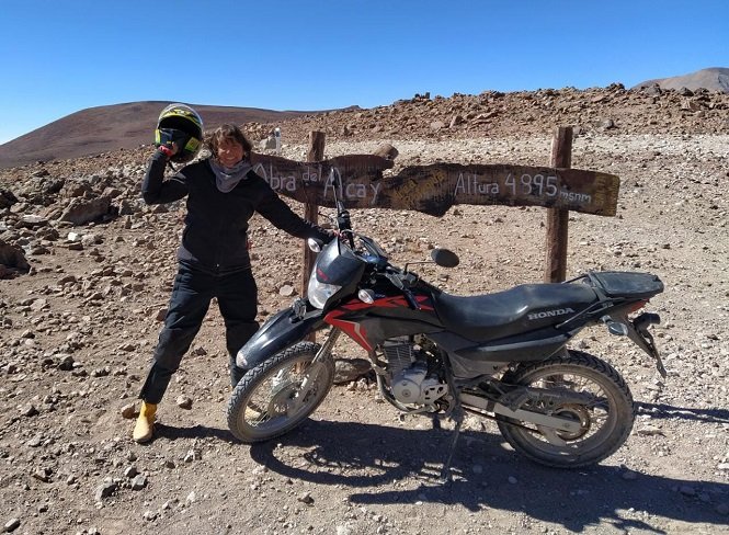 Aldana Humberto (41), es una trabajadora del sector gastronómico le gusta mucho viajar y de hecho, lo hacía todos los años a otros países. Debido a la pandemia, tomó la decisión de viajar en moto aunque por Argentina. En medio de esta aventura que implica sólo este año más de 10 mil kilómetros, pasó por San Rafael.