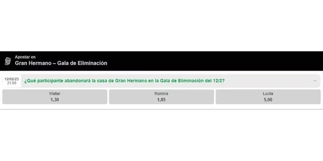 El famoso sitio de apuestas, llamado Bplay, ofrece la posibilidad de hacer todo tipo de apuestas de diferentes categorías. Desde hace un tiempo agregaron la opción de apostar por quién abandona la casa cada gala, esto ayudó a saber como un poco más de certeza quién se iba en cada día de eliminación.