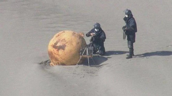 Encuentran bola de hierro de aproximadamente metro y medio de diámetro en playa de Enshuhama, en Hamamatsupic.twitter.com/4BzNK5w2vp
