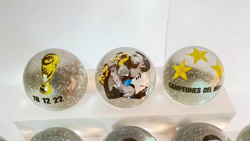 Los cuatro bolones restantes contienen imágenes icónicas de esa gesta triunfal como la de Messi besando la Copa o las tres estrellas que representan los campeonatos mundiales obtenidos hasta la fecha.