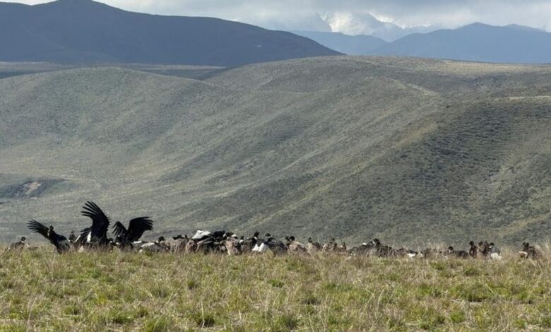 Fotos y video. Un hecho inédito para la conservación de la fauna silvestre ocurrió en la localidad de La Carrera, más de 90 cóndores andinos fueron observados y filmados de manera simultánea mientras se alimentaban.