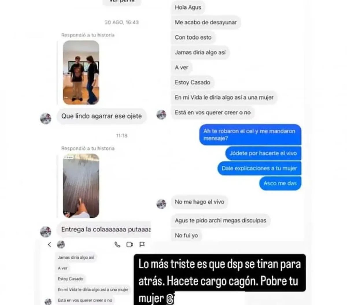 Albertario decidió exponer el intercambio junto al nombre y perfil del autor, quien después intentó desentenderse de sus actos. “Jamás diría algo así, estoy casado”, respondió en un mensaje privado. Sin embargo, la Leona no dudó en replicar con contundencia: “Ah, ¿te robaron el celular y me mandaron mensaje? Jodete por hacerte el vivo. Dale explicaciones a tu mujer. Asco me das”.