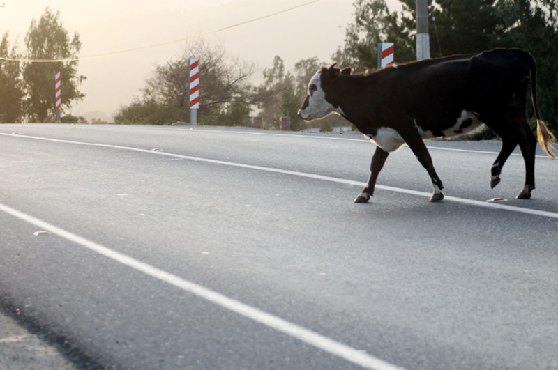 Una mujer chocó con su auto contra una vaca
