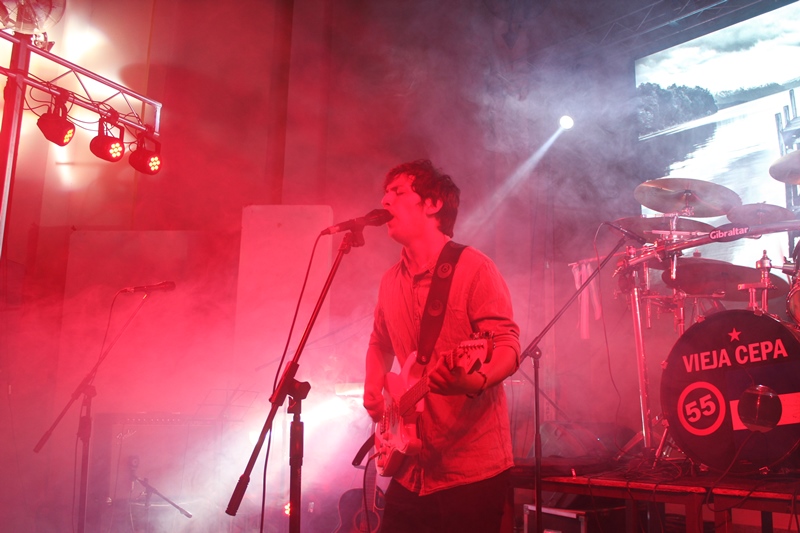 El sábado 08 de septiembre en el salón de usos múltiples del Centro Polivalente de Arte, Vieja Cepa presentó “Cielos azules, rojos también”. Previo a ellos, tocaron otros artistas que cursan en esa casa de estudios y, además, un músico de Buenos Aires, Gustavo Jerez (26), que es seguidor de Vieja Cepa.
