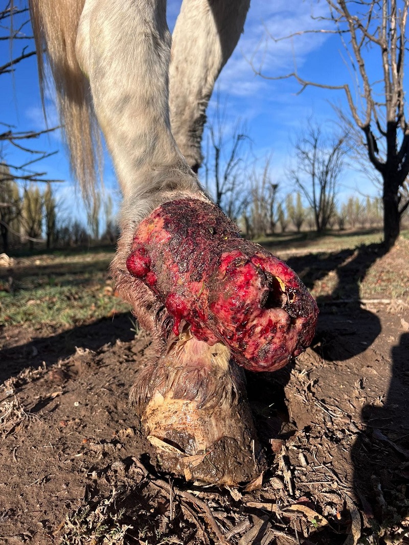Se descubrió que Milagros, una yegua de edad avanzada, había sufrido una herida grave causada por alambre. Las lesiones, lamentablemente, habían sido descuidadas durante un período prolongado, resultando en la formación de un queloide. Esta situación demanda una atención urgente y especializada.
