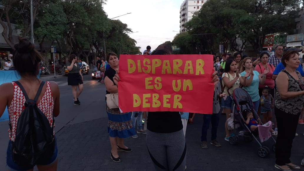 Tal como adelantó La Ventana San Rafael, este martes pasadas las 20 se desarrolló una manifestación en inmediaciones del centro para pedir el sobreseimiento del efectivo policial que estuvo detenido tras dispararle dos tiros a un hombre que estaba junto a un cómplice intentando robar en la playa de secuestros policial, ubicada en el parque Mariano Moreno y que según fuentes oficiales, habría amagado a sacar un arma de su cintura.