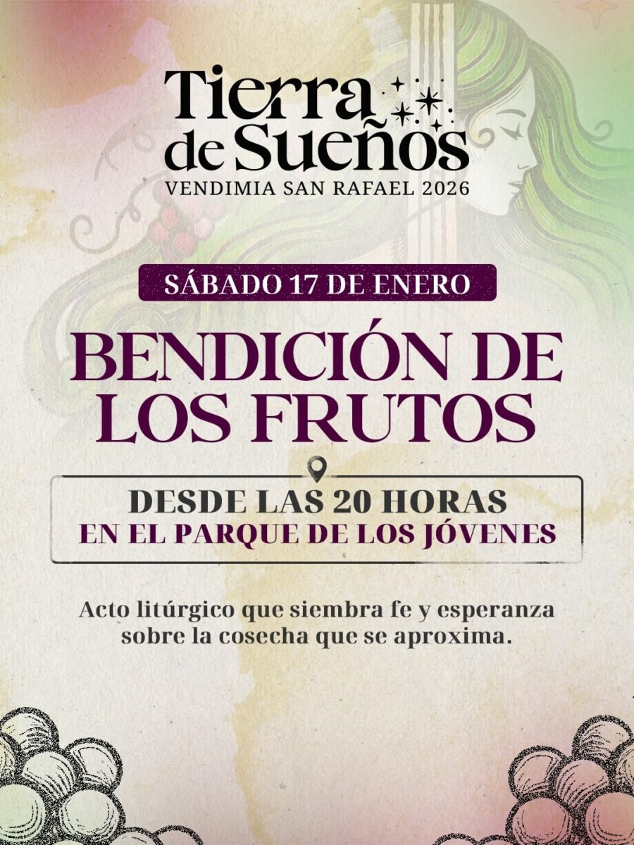 El sábado 17 también se llevará a cabo la Bendición de los Frutos en el Parque de los Jóvenes. Se trata de un acto litúrgico que pone en valor el sentido profundo de la Vendimia: la gratitud por lo cosechado y la esperanza por la temporada que se aproxima, en una ceremonia que cada año convoca a la comunidad.
