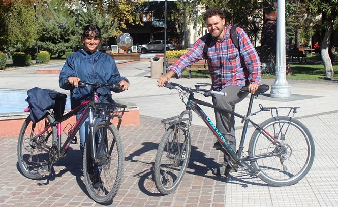Viajan por el país en bicicleta y por estos días recorren San Rafael