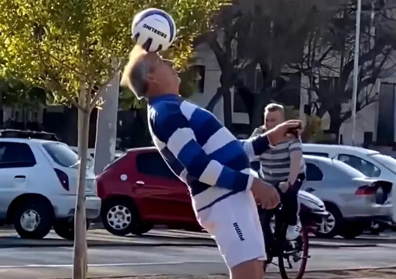 A través de un inspirador video, una tiktoker registró el increíble talento de un mendocino, de 76 años, con la pelota de fútbol.