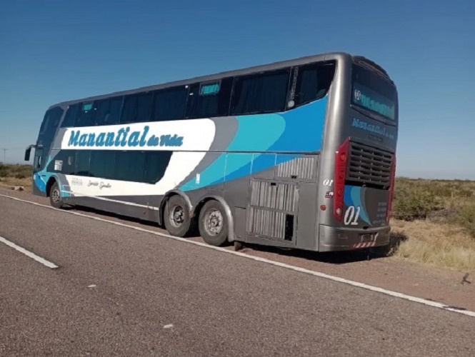 Una unidad de larga distancia de la empresa Manantial Blanco y Celeste salió de Mendoza rumbo al Norte del país pero a unos 65 kilómetros de Bermejo, en Caucete, localidad de esta última provincia, sufrió un desperfecto mecánico.