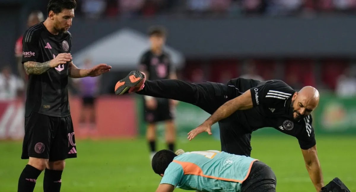Yassine Cheuko, el guardaespaldas de Lionel Messi, quedó en evidencia al hacer el “ridículo” y querer proteger al capitán argentino y figura del Inter Miami. Y lo que nunca antes había sucedido, terminó pasado: se resbaló cuando quiso tacklear a un hincha que saltó al campo de juego con la expectativa de tocar al ídolo y mejor futbolista del mundo.