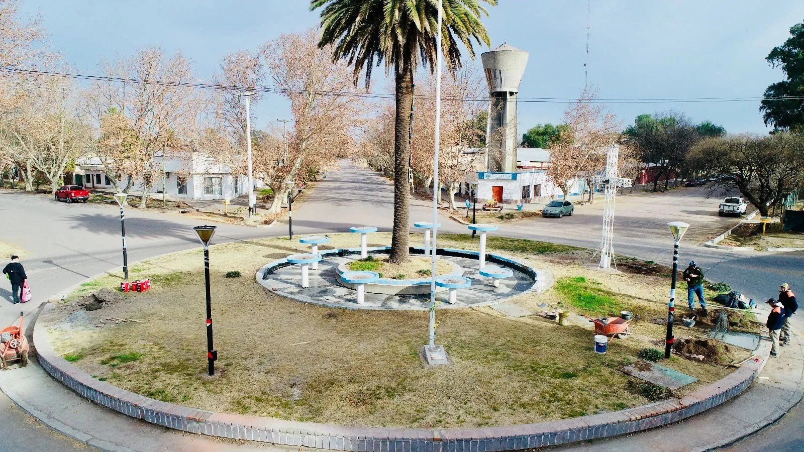 Dentro del plan de trabajos también se avanza en la puesta en valor de la emblemática rotonda ubicada en la intersección de Izuel, Belgrano y San Martín. Las tareas incluyen mantenimiento y recuperación de la fuente.