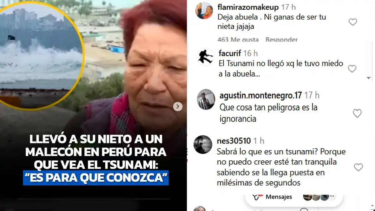 Ese fue uno de los comentarios en su contra que, en pocos minutos, recibió la abuela. La enorme mayoría la criticaba por estar en un lugar definido como muy peligroso por las autoridades. Pero peor todavía, porque lejos de estar sola, estaba acompañado por su nieto pequeño. “Lo traje para ver juntos un tsunami”, explicó, ignorante del riesgo potencial para ambos.